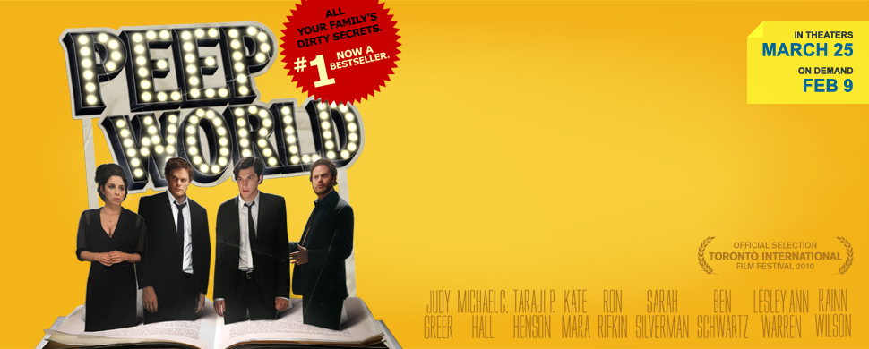 Peep World – despite its scandalous title – is actually the drama of an extended family reaching a breaking point. Hall stars with Rainn Wilson (his Six Feet Under co-star), Sarah Silverman and Ben Schwartz as the Meyerwitz siblings, a group of 30ish losers who have grown up in the shadow of their domineering father (Ron Rifkin).