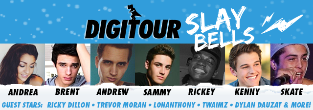 DigiTour has just announced their holiday tour – DigiTour Slay Bells 2014 with Generation Z favorites including Andrea Russett • Andrew Lowe • Trevor Moran • Sammy Wilk • Rickey Thompson • Kenny Holland • Skate Maloley • Twaimz • Lohanthony and many more!
