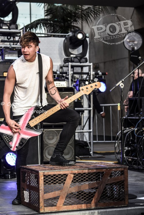 Fans showed up as early as one in the morning to try to be first in line. Fans without wristbands were allowed to get spots behind where the VIP Wristband holders would be. By 10am there was already about 200 non-wristband fans in place for the show. Hot Topic had fans line up at 1pm, the fans stayed close by to make that mad dash to be one of the first in line. Around 1:30pm they started letting fans in 20 at a time to get their spots by the stage.