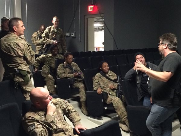 It feels wonderful. It feels like I’m finally able to pay tribute to those that are volunteering to protect our freedom. To be able to give back a little bit. Before the film came out – it’s coming out now on DOD, digital and everything – I did a tour of seven cities. There’s an eighth screening coming up. We would just do one night. We do a Q&A. We pick a charity that helps military families. Vets, or even active duty, like Operation Gratitude sends Care packages all around the world to the men and women that serve. To be able to give back with the film, like physical dollars, has felt great. And to be able to tell the story feels great. What changed along the way, from just setting out to make a movie about comedians telling jokes, was hearing these sound bites that are in the film from the troops themselves. From the young soldier who said how there are people that are going a little stir crazy out here, and they might hurt themselves, but the laughter is going to give them a reset button. Or the Master Gunnery Sergeant that says, “This is at a time in our deployment, we are over halfway there, but this is a little taste of home.”