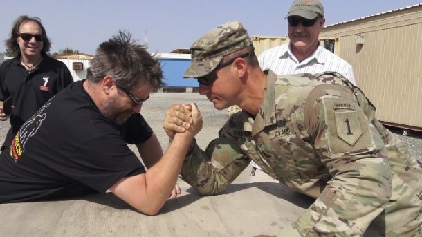 You’re traveling every day. You’re not going to see a movie during the day. You are going to – like we show in the movie – the meet and greets. You’re shaking hands with the troops. You’re telling them stories. Maybe telling them some jokes. But you’re learning where they are from. Most comedians have traveled so much that if you say you’re from Tuscaloosa, Alabama, I probably went to the Comedy Zone there. You are doing that, that one-on-one interaction with the men and women that serve. You’re with just two or three other people. You’re getting up at seven or eight to travel to a base. You’re going from unit to unit for six-seven hours, then you’re doing a show for two hours. You get to know someone.
