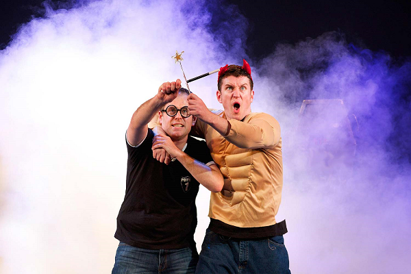 With shades of Hogwarts, I sat down in a secluded corner of a library – sadly, not an enchanted one – to chat (over the phone) with the Olivier-nominated British comedy writing/performing duo Daniel Clarkson and Jefferson Turner. They are better known as Dan and Jeff, creators of the popular stage parody Potted Potter. We talked for nearly an hour about the birth of their show, their time spent creating, writing and performing, and their thoughts on the current Potterverse.