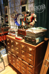 Throughout all the sets, there are unmistakable costumes worn by the cast. These include Amy’s classic sweater vest ensemble in the cafeteria and Penny’s outfit featuring a reusable bag with wine bottles in the lobby. Stepping into 4A, you’ll be greeted with intricate and detailed props, like the action figures spotted in many episodes, multiple Siam Palace take-out containers on the coffee table, and tons of books about science, math, or history plus comics, of course.