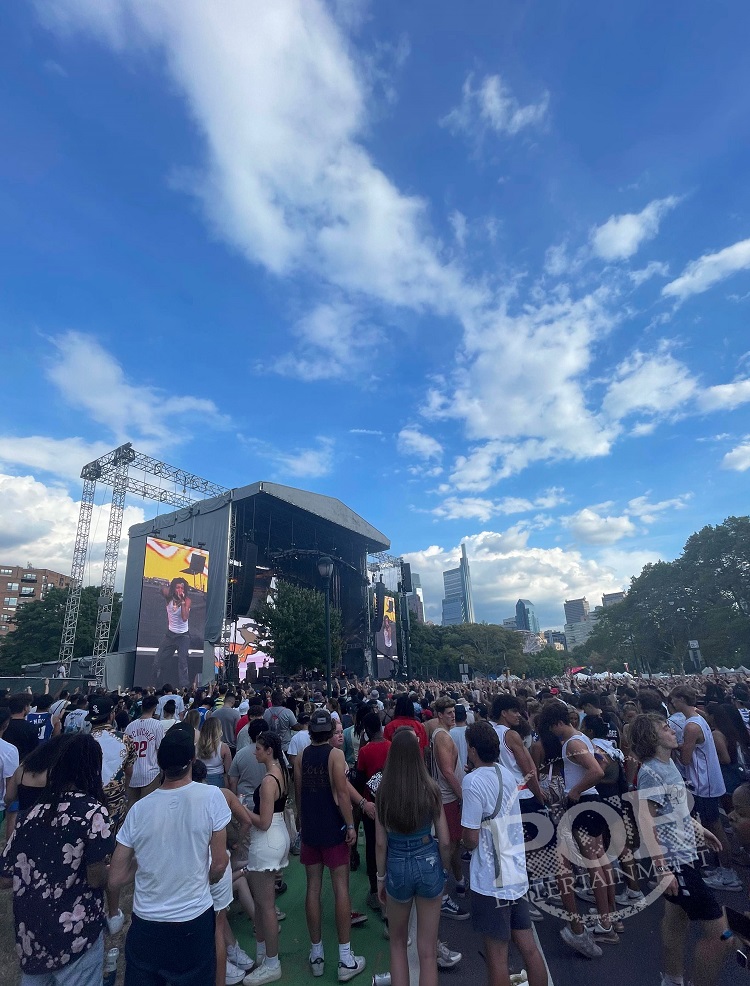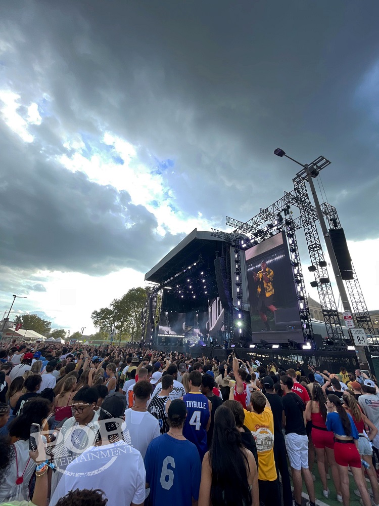 Crowds gathered back at Philadelphia’s Ben Franklin Parkway for Jay-Z’s Made in America this Labor Day holiday weekend. This was the festival’s second year back after a quick hiatus during 2020 due to COVID, and both the musicians and attendees were elated to be there. Food trucks were shelling out famous Philly Soft Pretzels and modern Asian cuisine from WokWorks, while the bar lines were a bit shorter – I’d say due to the majority of the concertgoers being on the younger side.