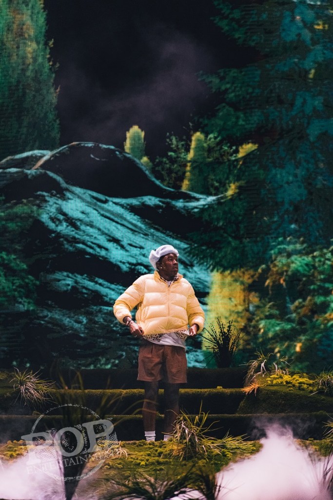 Closing out day one was headliner Tyler the Creator. Known for his creative energy and style, Tyler opened his performance stating that the crowd better be ready to watch him “prance around in his loafers for an hour.” Which… is exactly what he did. Just while maintaining his impeccable stage presence, performing his catchy hits such as “WusYaName” and “CORSO.”