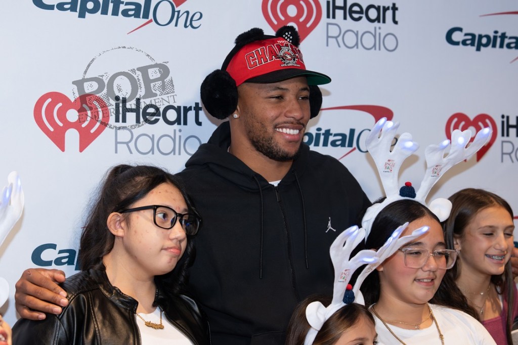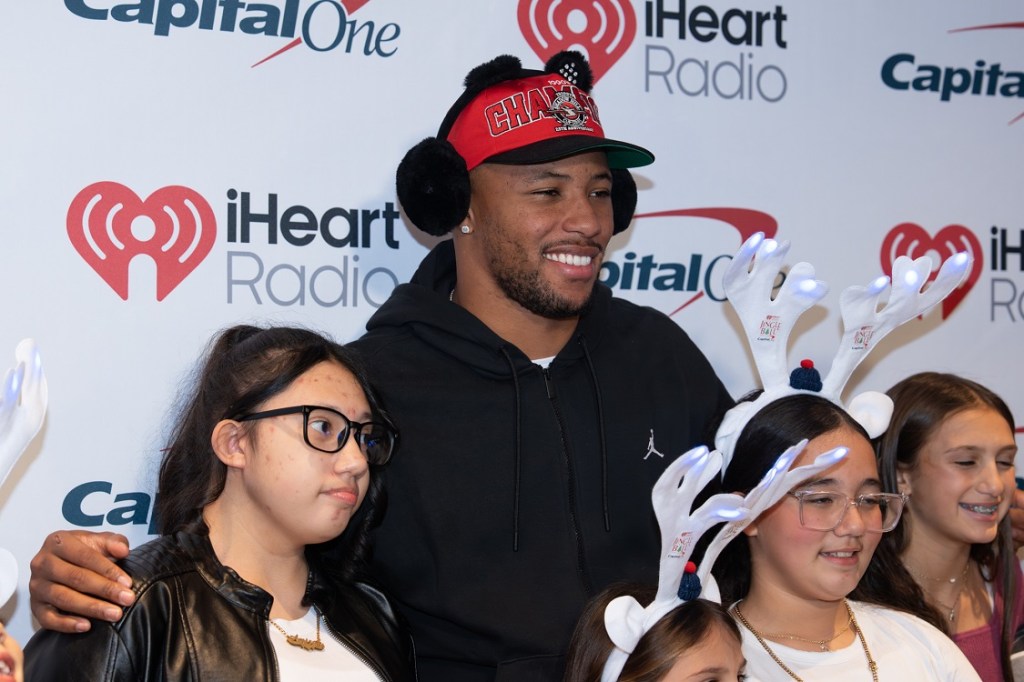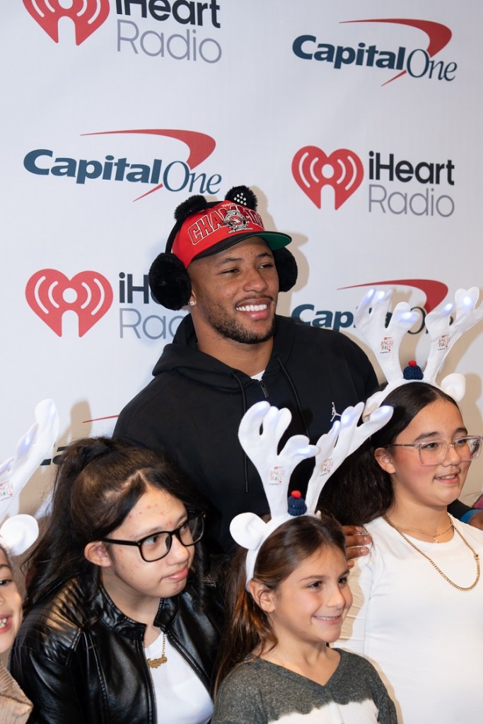 Saquon Barkley and kids – I Heart Radio Jingle Ball 2025 Red Carpet – Xfinity Mobile Arena – Philadelphia, PA – December 15, 2025 – Photo by Emma Fox © 2025